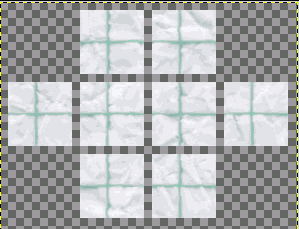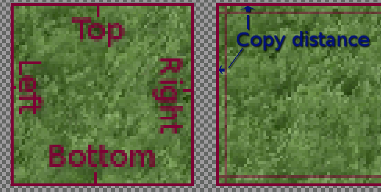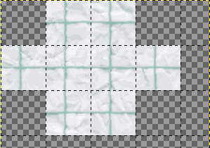 - Invoke Fill spaces with Tile size=64, margin=8 spacing=8 Copy distance 1. This will create frame around each tile.