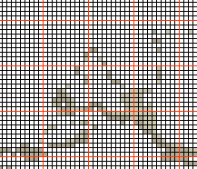 just one thread colour for those. I then turn layers on or off - using the 'eye' symbol beside each layer to see the colour I want to use, either against the grid or another dominant colour. In practice I have found that there is often a dominant colour, eg Black, which I leave turned on permanently to use as a framework. I then create a series of work files by saving the layers as .bmp - do not use .jpg as the colours will not be preserved in the correct form. I can then use a simple viewer when I am working the tapestry - I have found 'Eye of Gnome' to be excellent for this, it enables me to enlarge and move around the picture without accidentally altering it in any way.