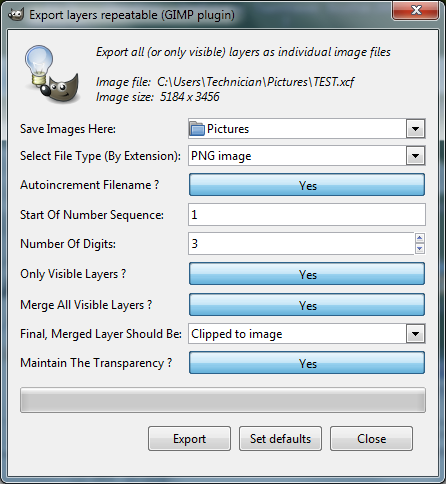 V.0.1 (20120513) - based on the plugin "Export Layers" version 0.5 by Chris Mohler.