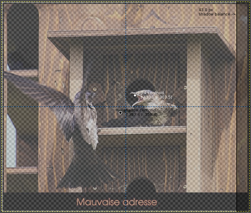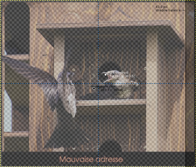 This Python plug-in helps in the comparison of the left part of an image to the right part (equilibrium or not). It can be applied to any type of image and computes the centroid of the gray image pixels. The centroid is similar to the centre of mass concept, where mass is replace by another quantity; here it is the lightness and the greyness of the pixel.