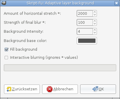 This sets the Gaussian Blur filter in interactive mode and lets you define the blurring options by yourself. First appearance of the filter is for the “Amount of horizontal stretch” value. You should unlink the values and adjust the horizontal value by yourself. The second appearance is for “Strength of final blur”. You should link the values and set them to a blur you like.